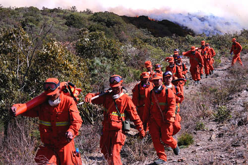 石林森林大火,到目前仍在燃烧,并向邻县陆良蔓延,情况不容乐观。昨日,国家森林防火指挥部办公室负责人杜永胜、云南省副省长孔垂柱、昆明市市长张祖林在石林县杨梅山火灾指挥部里决定成立昆明市石林县森林防火扑救指挥部,由张祖林任总指挥,连夜细化扑救方案,力争今日上午扑灭杨梅山明火。张祖林还当场决定,先拨100万元作为扑火经费,一定让奋战在扑火一线的官兵和群众有足够的物资及后勤支持。据介绍,目前杨梅山北线在陆良的山火尚未彻底扑灭,南线仍然有蔓延趋势,对周边居民住宅产生较大威胁。
