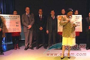 随后捐款仪式正式开始,现场气氛十分热烈,在场嘉宾无论男女老幼,无论种族国籍,纷纷踊跃上台捐款。一些西班牙友人也无私的加入到了捐款的行列中。在捐款仪式结束后,晚会组委会宣布,当晚共筹集善款以及捐赠物资共计十九万九千多欧元。