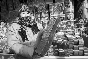 “1000响”的鞭炮比“1000型”的鞭炮厚很多■本报记者 王海英 摄