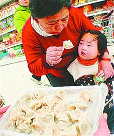 王来华介绍说,为了图吉利和喜庆,人们在包饺子的时候会往里放些东西,如红枣,寓意早生贵子或早日发财;有的放入栗子,寓意大吉大利;还有的放入硬币,谁吃到了,预示谁能发财。