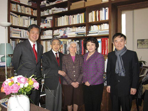 12日,孔泉夫妇又来到程抱一先生位于巴黎先贤祠附近的家中探望。程先生来法六十余年笔耕不辍,致力于中法文学创作和翻译,并发表大量专业艺术论著,被誉为“中法文化不倦的摆渡人”。除详细询问程先生的身体状况和日常起居外,孔泉还就文学创作、翻译出版和世界文学发展现状,与程先生进行了交流。