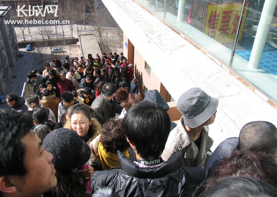 2月17日,由于游客量超出石家庄联邦明珠空中花园的承受能力,该园临时对游客实行限量分时放行进入,造成数百名游客滞留。长城网记者姜薇摄