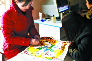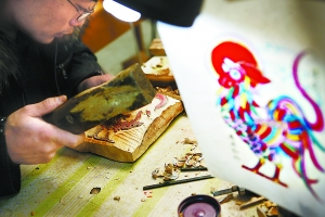 设施齐全的年画博物馆工作室内,一位年轻学徒在练习刻版。
