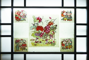 传统的窗格配上颜色艳丽的年画,年味十足。
