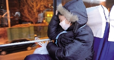 晚上,邵帅坐公交车回家,之后还要步行一段时间, 骨髓移植前的检查让他经常出现恶心、头晕等症状。