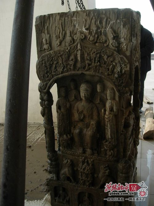 当天下午,故城县文物部门的工作人员将出土的佛像清洗后,记者看到该佛像四面共有上百尊塑像:四面的释迦摩尼像形态各异,有的打坐讲法,有的静修;上面的罗汉也是神情各异;一尊尊姿态各异的飞天更是美轮美奂;吹箫的、弹古筝的、弹琵琶的、弹琴的等弹奏各种乐器的司乐之神;护法的狮子、驮龙柱的大象、美丽的凤凰、腾飞的龙……