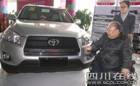 “基本上明天就签购车合同,提到车,就立即通知北京的技术人员来改装!”昨天下午4点过,在成都华阳一家丰田4S店,成都市残疾人福利基金会理事长廖国龙坐着轮椅,绕着已经选定的越野车又仔细打量了一番。55岁的廖国龙因为高位截瘫,轮椅已陪伴他26年了,因为2月20日通过了驾考理论,他离自己的驾车梦越来越近。