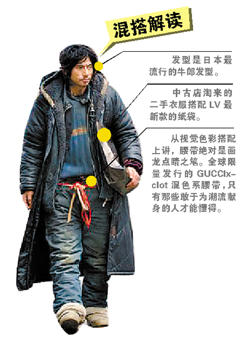 欧美粗线条搭配中有着日泛儿的细腻,绝对日本混搭风格,绝对不输藤原浩之流。(犀利哥常在宁波东门口、新华书店一带出没。图片来自网络。)