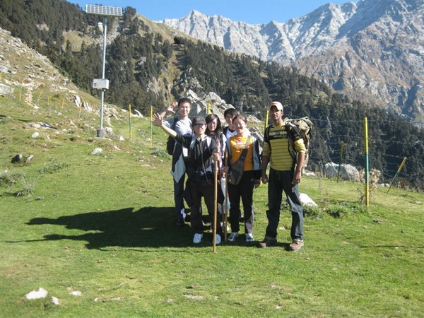 【2009年10月,刘志鹏(后左一)同一些中国留学生和印度朋友共同参加了一次喜马拉雅山之旅。图为他们刚刚爬上目的地。】