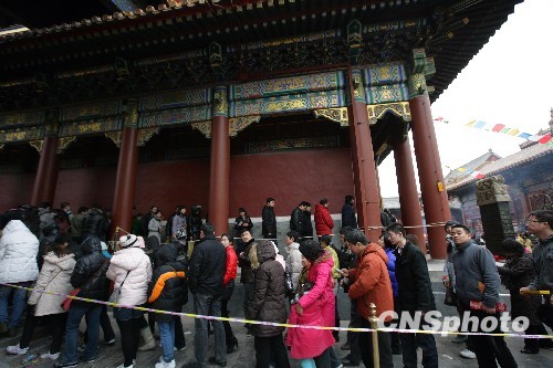 元宵节数万市民北京雍和宫祈福(组图) 国际在线 国际在线官方账号 2010.02.2818:50 关注 2月28日是正月十五,又恰逢周末,雍和宫门外从凌晨开始就有市民排队上香祈福。截至当日16时,雍和宫内的游客已经达到3万多人次。中新社发 刘震 摄 中新社发 刘震 摄 中新社发 刘震 摄 中新社发 刘震 摄