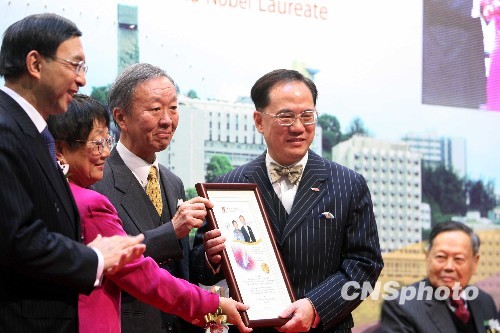资料图:2月5日,香港中文大学举办的“高锟成就展”开幕,展品包括诺贝尔物理学奖得主、中大前校长高锟赠送的他历年获得的18个奖状、奖牌。特区行政长官曾荫权等出席开幕仪式并与高锟合影。中新社发洪少葵 摄版权声明:凡注有“cnsphoto”字样的图片版权均属中国新闻网,未经书面授权,不得转载使用。【更多图片】