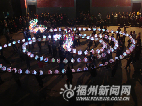 福州新闻网讯 28日晚,福清市三山镇瑟江村的村民们舞起了闹元宵的“板凳龙”。