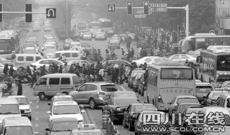 2月22日,正月初九。成都市出台的一系列缓堵保畅措施在这天经历了第一次大考验。成都市公安局交管局指挥中心统计分析,早高峰的出现时间比以往晚了10分钟,晚高峰提前了大约20分钟,下班出城的路不如早上顺畅。