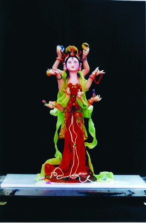看到这么多活灵活现的人物,记者又一次发出了疑问:“捏面人的时候,是把原型的东西放在面前,边看边学吗?”“当然不是了,做面塑都有一种情感体验在里面,是一种内心的、内在的一种体现。做之前,那些形象就印在脑子里了。”董凤歧笑着说。她在做观音的时候,心里就会想着观音慈善的表情,那种非常丰满的脸型、安详的表情、富态的大耳朵。要想做好面塑,必须保证自己的心情愉悦,如果自己都很烦躁,即使做好了面塑,也不是成功的。“我做面塑的时候,感情很容易投入,越做越高兴。特别满意的作品,自己也是看不够,有时候半夜里起来还想看看呢,真是爱不释手。”