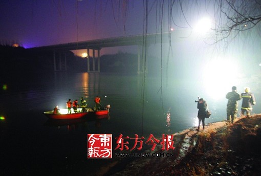消防官兵乘坐6艘冲锋舟在专业潜水队的配合下,确定客车坠河的准确方位,潜水员下水搜救乘客,并用救援绳捆住客车,使用大型起重设备对客车进行起吊。两名专业潜水员全副武装潜入水中搜救落水人员。