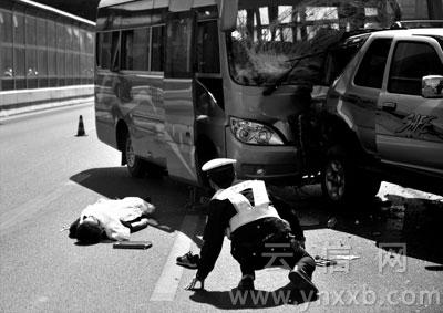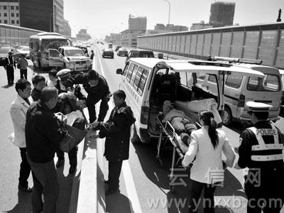 违规驶上昆明西二环高架 19座中巴撞上越野1死9伤