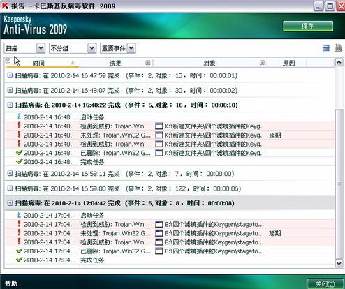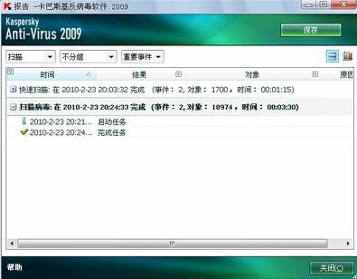 由图看出,在同样设置为“扫描所有文件”和同一个Windows目录的条件下,卡巴斯基扫描了18974个文件,用时3分30秒;而360扫描了46659个文件,用时9分21秒。经仔细观察发现,造成这一现象的最主要原因是360对cab文件和chm文件进行了更细致的展开扫描,所以扫描文件多而耗时长。