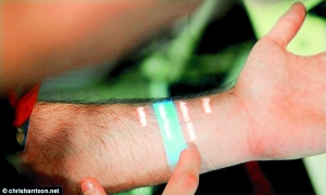 这款皮肤触屏可以用来控制音频设备、简单的游戏、打电话和操作简单的浏览系统。主要研究者、卡内基梅隆大学的克里斯·哈里森对这个小玩意儿评价很高:“这是前沿科技,我们真的从中看到了未来。”