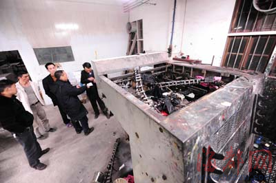 印刷机上还残留着破碎的衣物