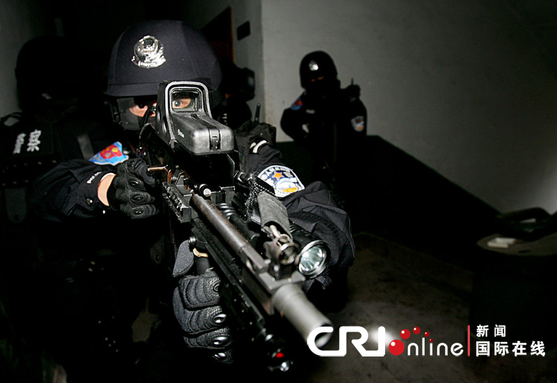2010年3月6日,重庆渝中区警方举行“2010闪电1号”实战演练,5分钟就封锁了渝中半岛,3名“嫌疑人”先后落网。猎豹突击队对现场进行封锁。