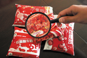 两种牛奶的包装真的很酷似 记者 张玉杰/摄