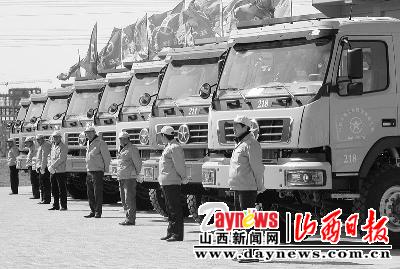 3月9日,山西大运汽车制造有限公司向山西朔州煤矿工程项目部交付了30辆自卸卡车。这是该公司第一次大规模向用户交车,标志着汽车行业新品牌“大运”重卡已经得到市场和消费者的认可。图为大运重卡交车仪式现场。