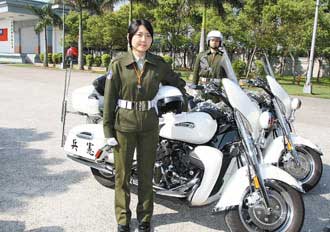 中国台湾网3月11日消息 台宪兵在李翔宙接任司令后欲改革台军,让台湾知名度最高的台军部队宪兵机车(摩托车)连,加入台军建军以来的第一位女排长。
