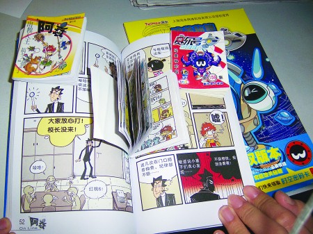 “现在小学生之间最风靡的就是‘阿衰’连环画和‘赛尔号’游戏指南、攻关秘籍等。”市民陈先生手持花花绿绿的儿童读物熟练地向记者介绍。燕山小学三年级一位小学生悄悄告诉记者,班上流行玩赛尔号游戏,课间、传纸条都在谈这个,相互比较游戏的级别。