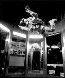 为确保特制服装在极端环境下合用,鲍姆加特纳和他的团队前往美国加利福尼亚佩里斯的一个风洞展开测试。鲍姆加特纳头戴头盔、身着特制服装,风洞中时速209.2公里的风将他吹至半空,他看起来轻松自如,借助姿势调整,可以漂在空中或落地。