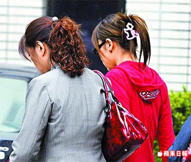 “小煞”(右)被捕后,家人昨前往警局关心。 来源:台湾《苹果日报》