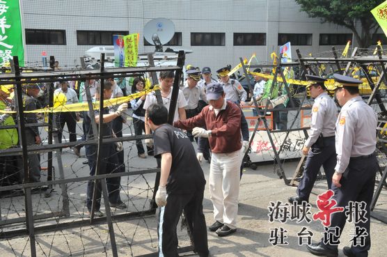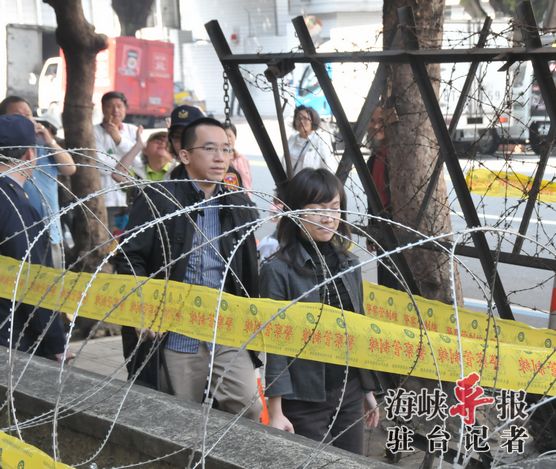 吴淑珍要来了,警方把一个拒马移开等候(海峡导报驻台记者 陈柱胜 摄)