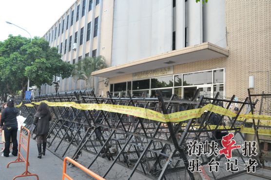 刑事庭门口,拒马摆起来(海峡导报驻台记者 陈柱胜 摄)