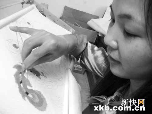 或许就是这种自己钻研的习惯,使她学东西很快。她对记者说,四个月来她都是靠看书和看作品的照片去学刺绣针法,“别人学刺绣都有师傅指导,但我只能通过文字描述,然后靠自己想象去下针,刚开始时失败过很多次,四个月下来我从120多斤瘦到只有90斤……”