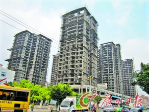 常平镇中心有6栋已经封顶的22层的高楼,然而,两年前,这6栋高楼竟然就开始停工。两年来,风吹雨淋,6栋高楼外的脚手架生锈破损,高楼渐成了烂尾楼。