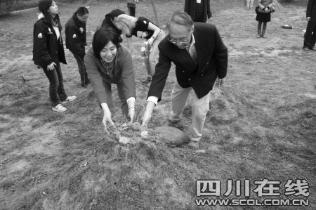 除了孩子们,昨天上午,香港前特首董建华的弟弟董建成携妻子董温子华女士也专程从香港赶来,在黑熊救护中心的墓地悼念死去的黑熊。“董建成夫人不是第一次来了,他们还认养了两只黑熊。”救护中心工作人员说,2008年,黑熊泰坦因为和同伴玩耍而闪了腰,接受治疗时,董建成的夫人董温子华就前来探望过,还为中心捐款8万港币,认养了两只黑熊“东方”和“海外”。董建成夫妇这次除了来看两只黑熊外,还为去世的黑熊送上了花环。