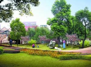 此外,整个区域还将进行整体绿化,会种植樱花、碧桃、榆叶梅等观赏性小乔木,并在四周配有各色花卉。