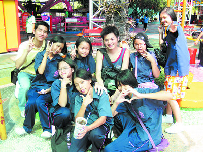 张一方(后排右三)在实习学校与泰国学生们在一起。stefan 摄