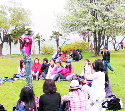 趁着春光明媚,结伴出游大学生成“串门族”主力军。王轩 摄