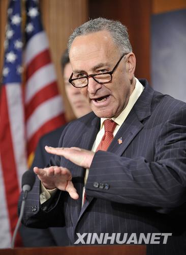 3月16日,在美国首都华盛顿国会山举行的记者会上,美国国会参议员查尔斯·舒默就人民币汇率讲话。在美国即将举行中期选举之际,美国国会部分议员近日不断炒作人民币汇率问题,试图迫使美国政府将中国界定为所谓的“汇率操纵国”。 记者张军摄