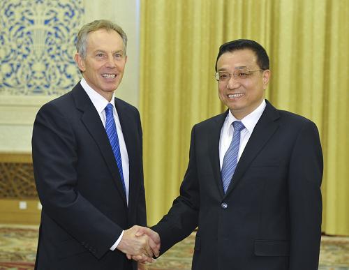 李克强25日在人民大会堂会见英国前首相布莱尔