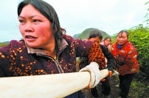 寻水之路充满艰辛。一处没有,别处再挖,还没有,再挖……从找水到挖水,陈秀泰用了大半个月。这股地下水从田里通过1000多米管线引到了家里,水管搭在一个大木桶上,水质清清亮亮,水量不小。“除了人饮,多少还能灌溉,挽回油菜的一点收成。”陈秀泰说,村民纷纷按照他家的模式挖田找水,现在已有近30户村民打出水来了。