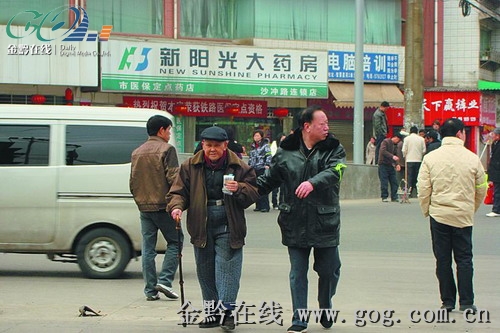 志愿者劝导搀扶老人走斑马线