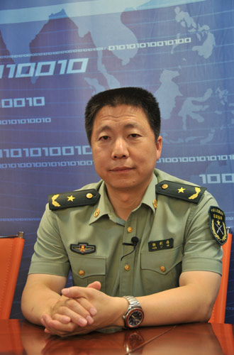资料图片:这是2009年7月7日中国航天英雄杨利伟做客新华网访谈直播间。新华网 陈杰摄