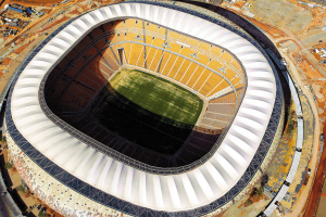 南非“鸟巢”体育场的设计灵感来自于非洲主妇烹制美食用的炊具,体育场底部大片的赭红色则用来模拟一团团升腾的火焰,将南非元素体现得淋漓尽致。