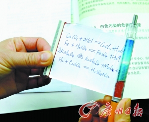本报清远讯(记者曹菁摄影报道)外表看起来,这是一支普通的圆珠笔,可是里面却暗藏玄机。昨天,清远一名家长向记者反映,在孩子所读学校周边的小卖店里,销售一种笔,竟然是卷轴弹簧设计的,可以将考试内容藏在笔的“肚子”里,考试时轻轻拉动笔上的一个装饰,就可以轻松地展开阅读,如果老师走近,随时又可以缩进笔内,很难被发现。