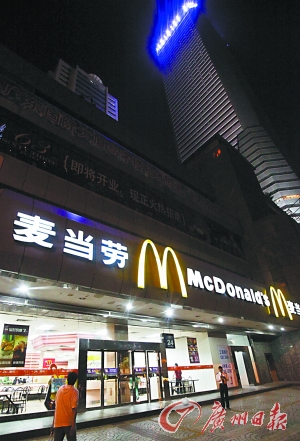 本报讯 (记者伍仞 实习生刘高阳)和17年前开业时顾客从收款台排到马路的“墟撼”场面相比,麦当劳广东国际大厦(又称63层)分店的结业着实低调——昨天晚上8时,不少正在该餐厅内用餐的顾客都不知道,自己成了广州第一间麦当劳的最后一批顾客。