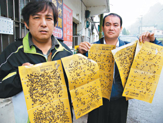 一天10张黏板人手一把苍蝇拍 新竹村落闹蝇灾(图)