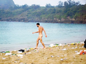 大卫说,他原本只是远距离拍,几名老外看到他拿相机,不但没阻挡,“还很大方让我拍”。这时,站在旁边的外籍美眉靠过去,要与遛鸟侠合照,遛鸟侠反而有点不好意思,用手遮住下体。他说,“我po这些照片,不是散播情色,只是想呈现海边景观维护的重要”。