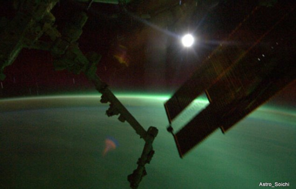 据国外媒体报道,这张图片是在国际空间站上的日本宇航员野口聪一拍到的,当时空间站正以2.8万公里的时速速度朝北极光的方向疾驶而去。他拍到这张惊人照片后,空间站从北极光里穿过。稍后他把自己拍到的该照片上传到Twitter上,供大家观看。