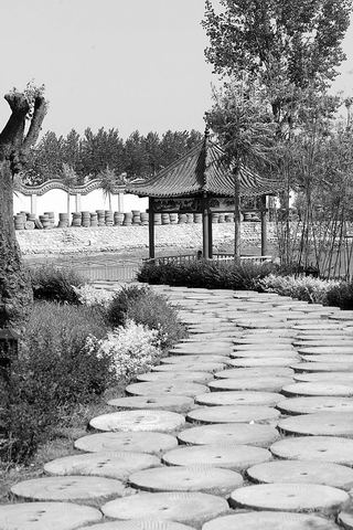 中原民俗园里的石磨盘小路,展示着一种生动而独特的风景。 记者王建立摄